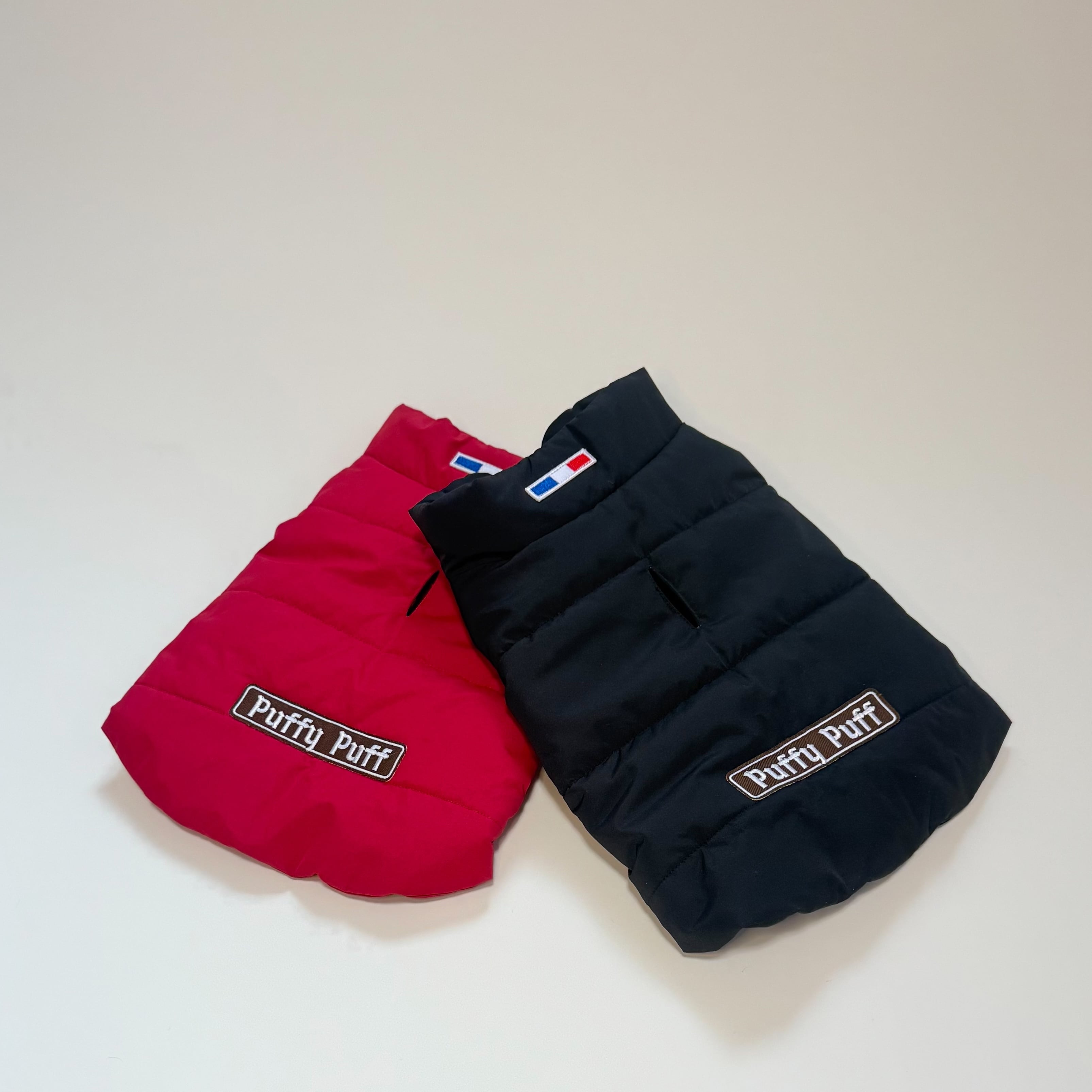 背中には、ブランドロゴ「Puffy Puff」のワッペンを配し、ブランドらしさをさりげなく主張します。